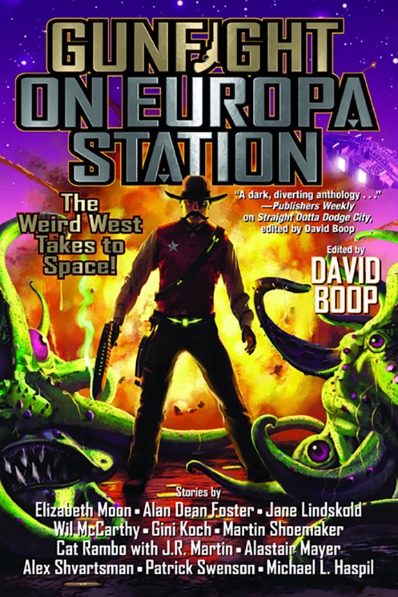 “Boop brings together 10 alternately (and occasionally simultaneously) hilariously off-beat and grimly violent tales for his second sci-fi western anthology (after Gunfight on Europa Station).” – PW